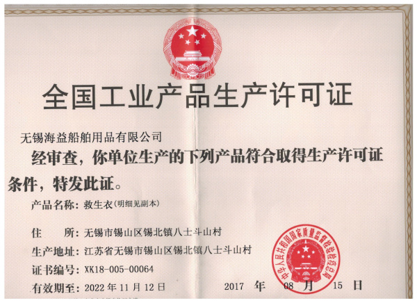 無錫海益船舶用品有限公司是船舶救生設備的專業生產企業,地處江蘇省無錫市,屬長江金三角腹地。主要生產氣脹式救生衣,三片式救生衣等各種救生設備,示位燈、信號設備、救生艇筏屬具及其它船舶配件。公司產品已越來越受世界各國用戶的青睞。